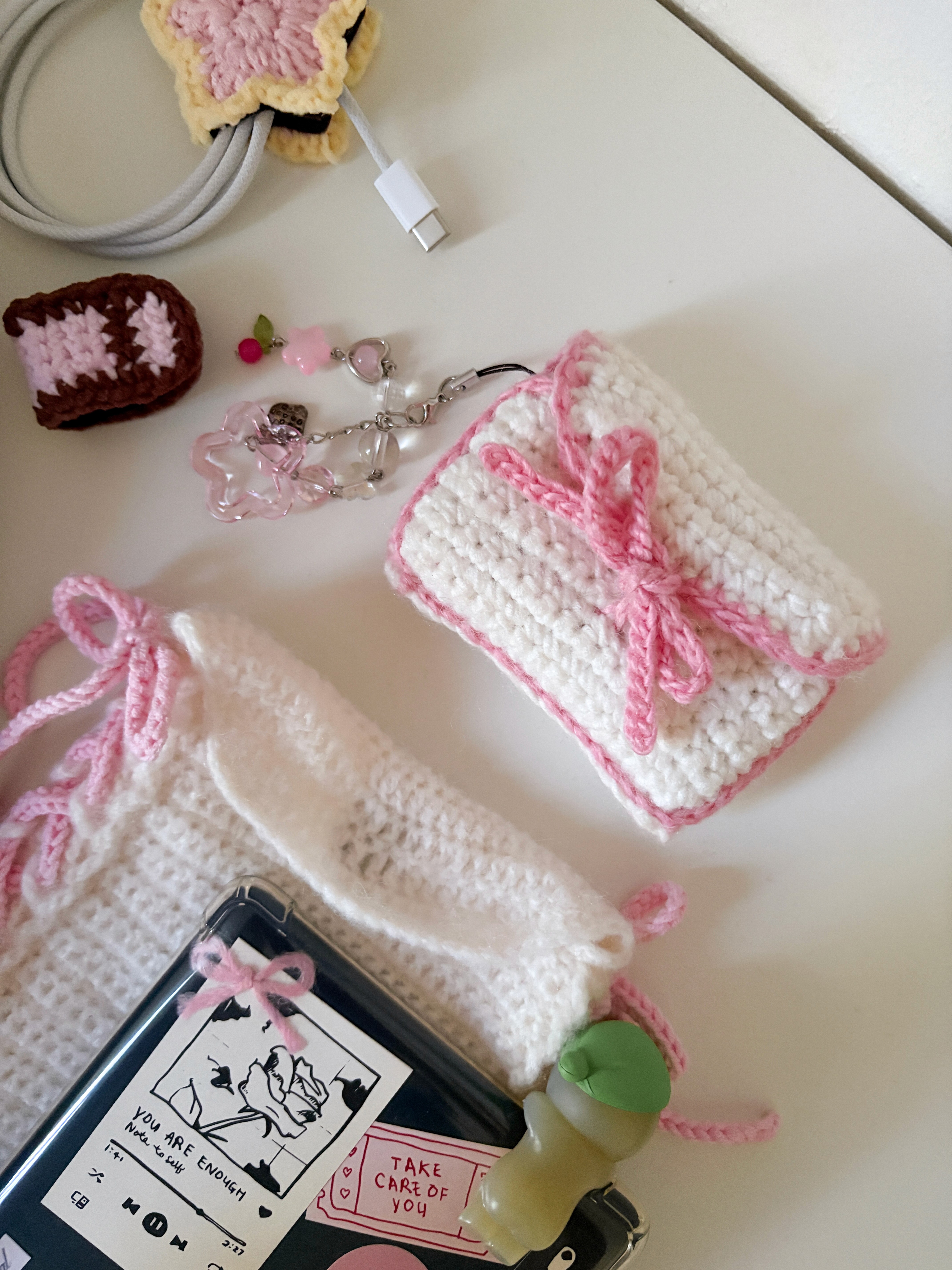 Please do not copy or redistribute this pattern as your own. This lipstick holder and pouch crochet pattern belongs to me, @mucie.studio. You may sell the finished items made using this pattern! Just please give me credit to help support me and my art. This will help me create more patterns for you in the future!