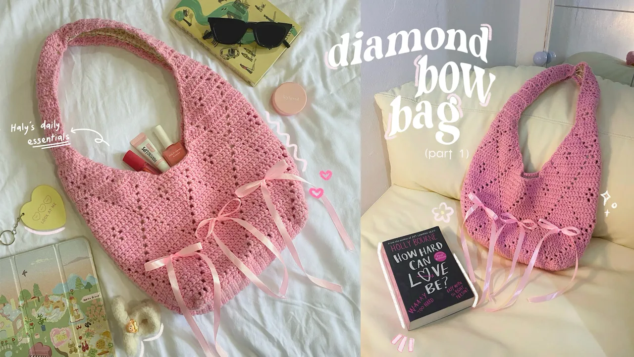 Please do not copy or redistribute this pattern as your own. This diamond bow bag pattern belongs to me, @mucie.studio. You may sell the finished items made using this pattern! Just please give me credit to help support me and my art. This will help me create more patterns for you in the future!