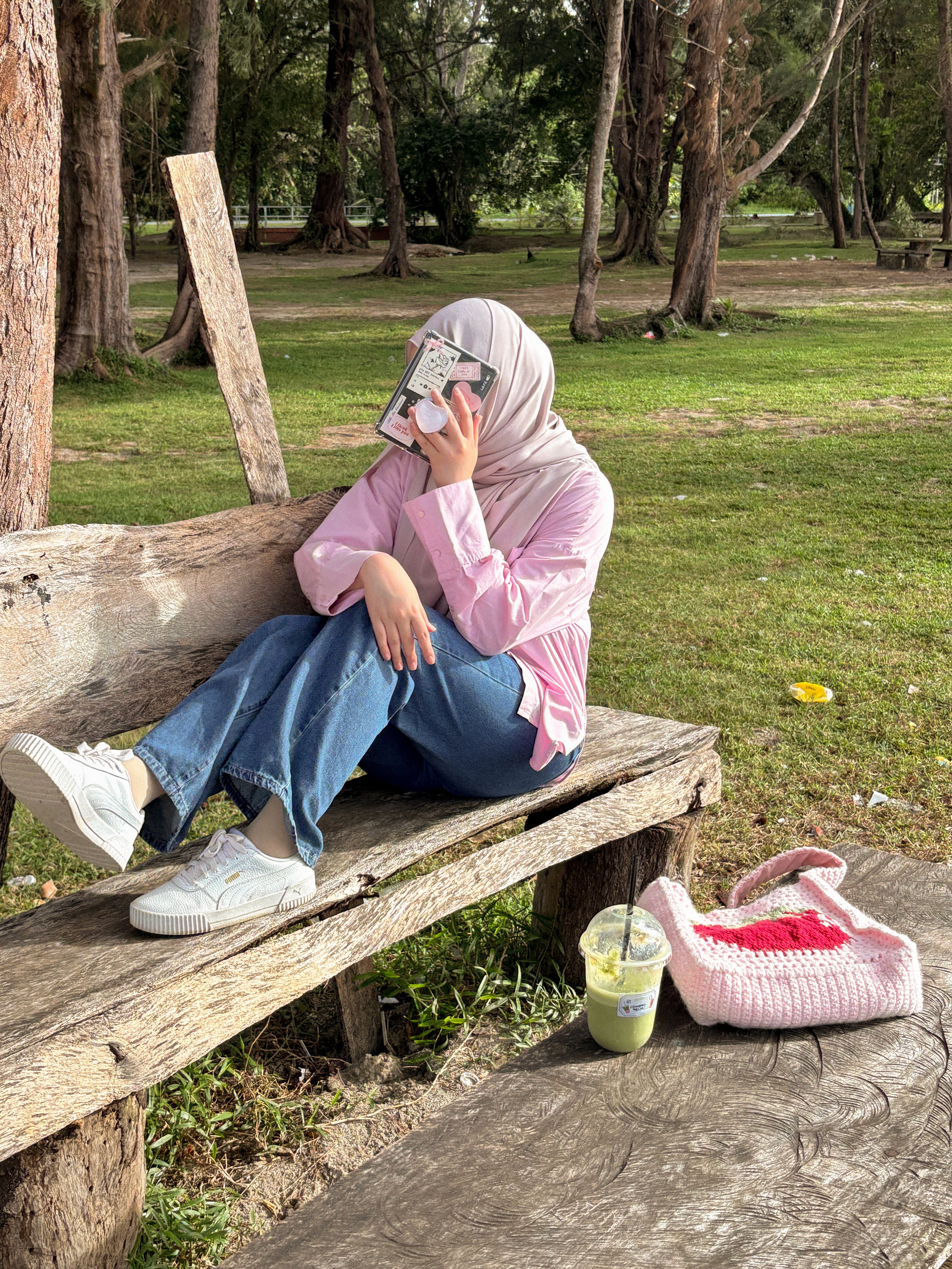 I brought the bag with me to the cafe and the beach right after I finished making it! <3