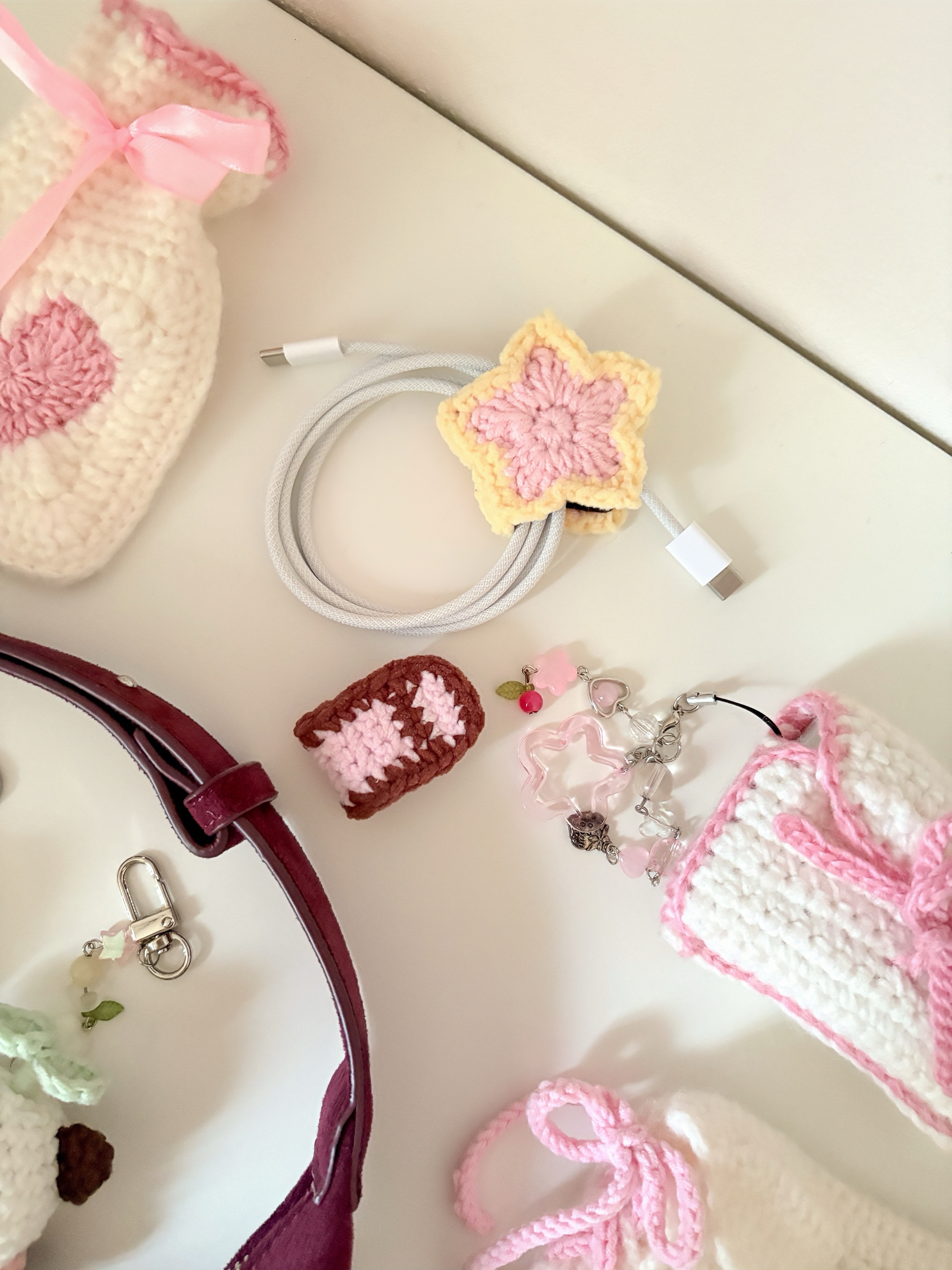 Stay organized in style with this crochet pocket tissue holder and cable organizer the two quick and easy projects that are perfect advanced beginners. These functional crochet accessories are not only practical but also cute, making them ideal for your bag, desk, or as thoughtful handmade gifts. The pocket tissue holder keeps tissues within reach and protected!! I hang the tissue holder on my bag so it's easy for me to reach for it (of course I tuck the tissue inside so it doesn't catch dust) while the cable organizer helps you store chargers, earphones, or cords neatly and tangle free. In this pattern, I’ll guide you through both projects using simple stitches and minimal sewing. By the end, you’ll have two handy crochet accessories that are quick to make and add personal touch to your everyday essentials!! <3